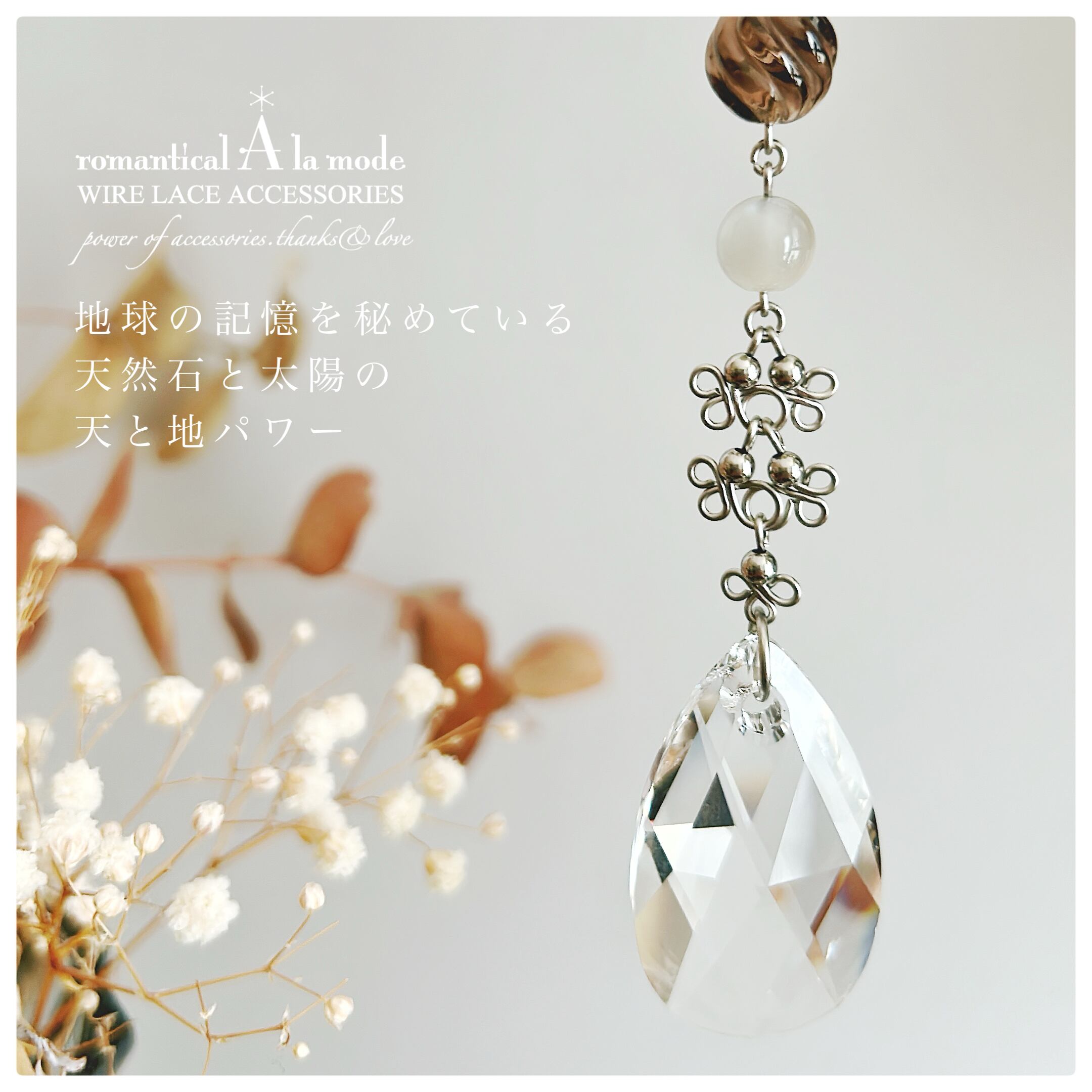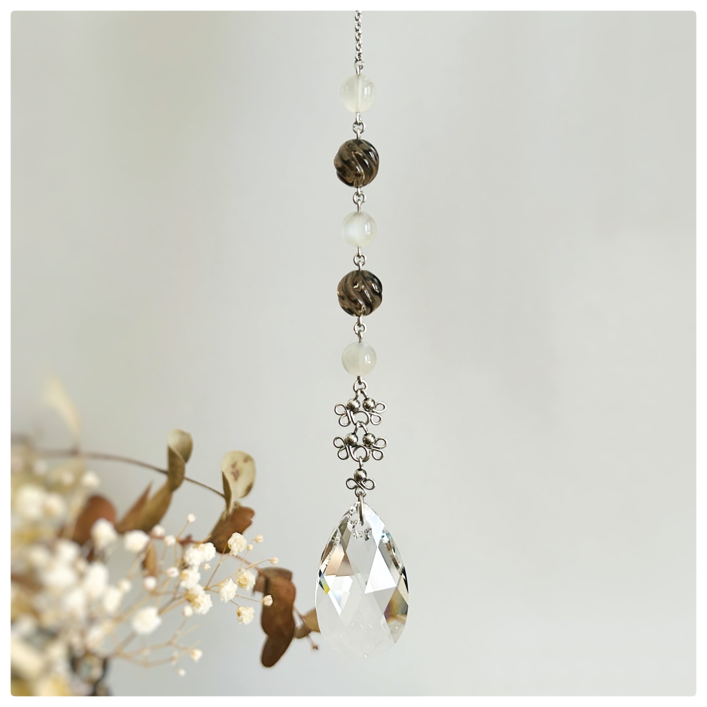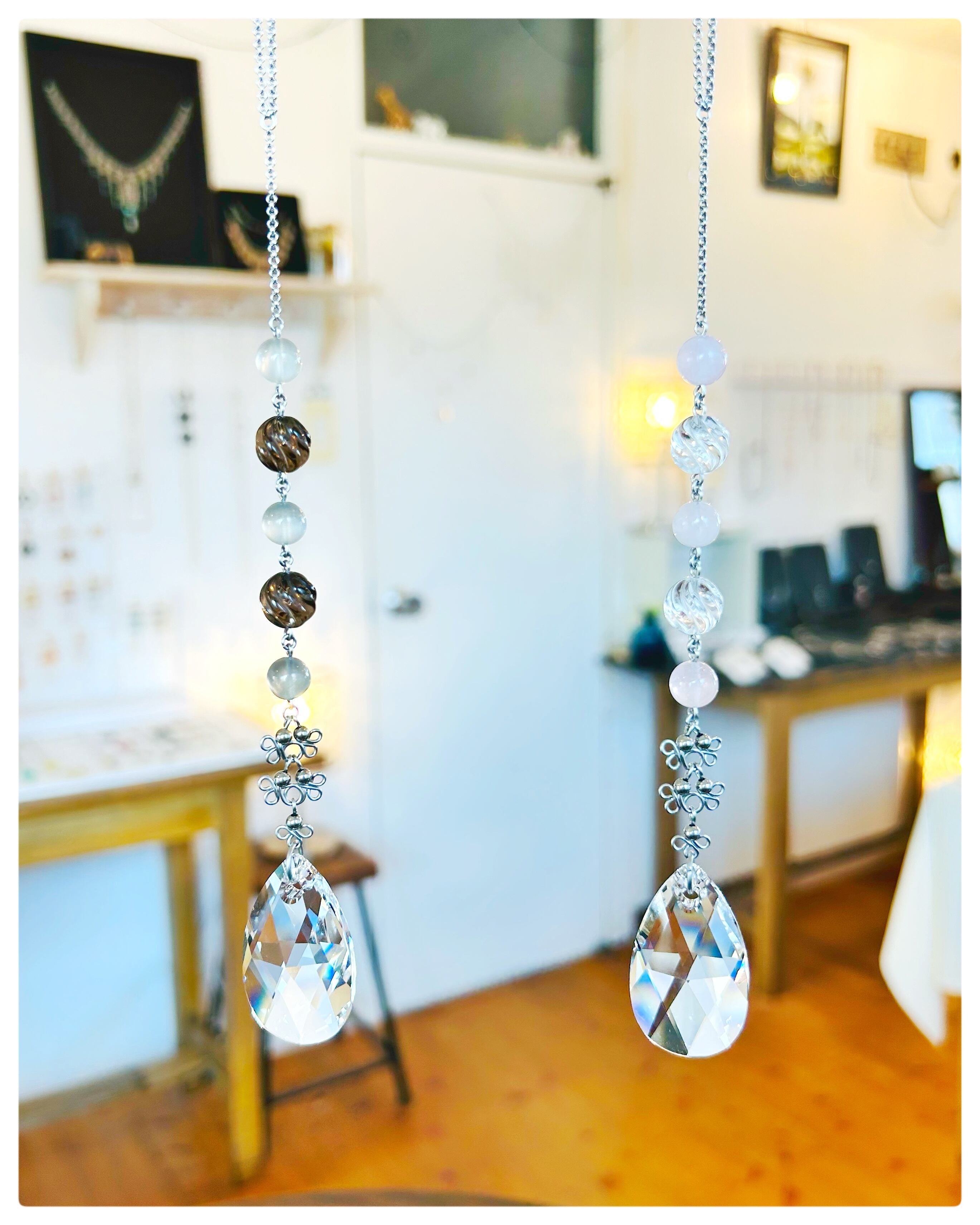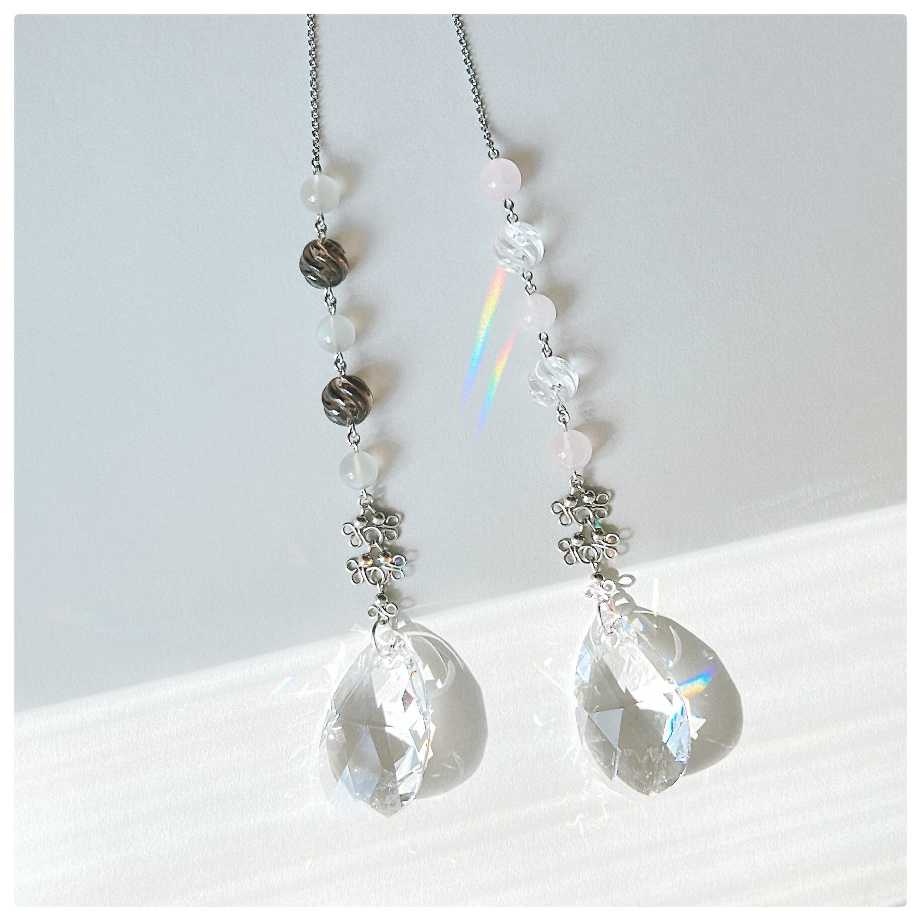 サンキャッチャーと天然石はエネルギーたっぷりでオススメの組み合わせ。大切な方への贈り物にもぜひ♪