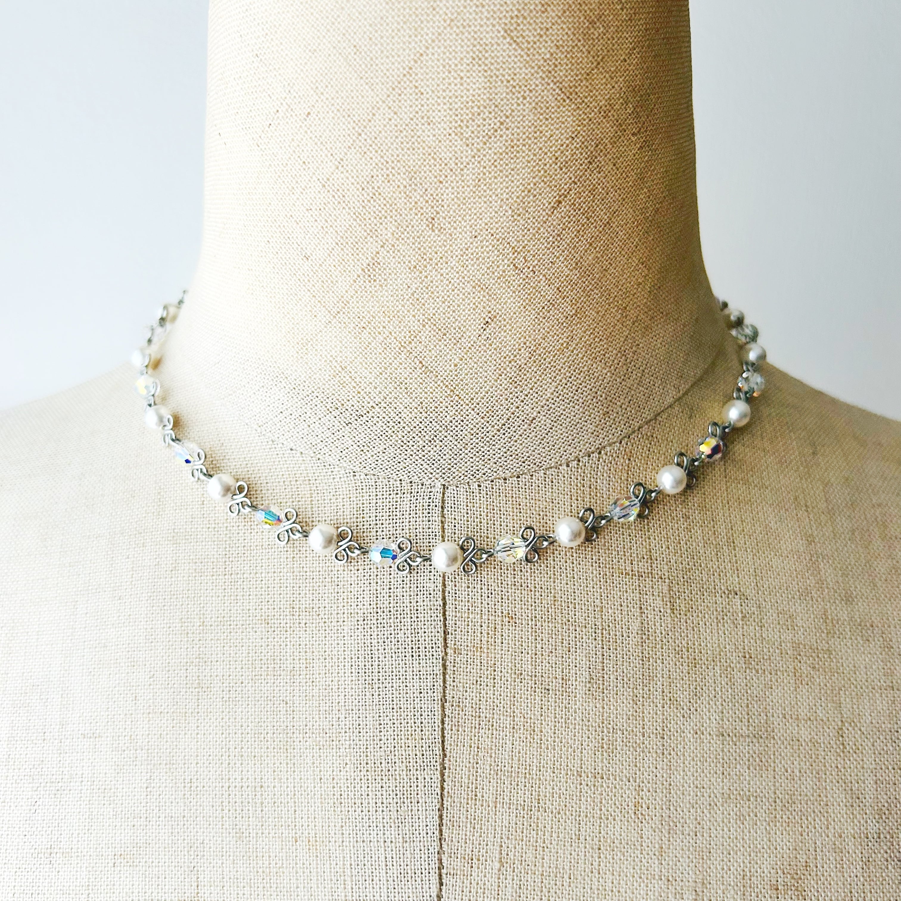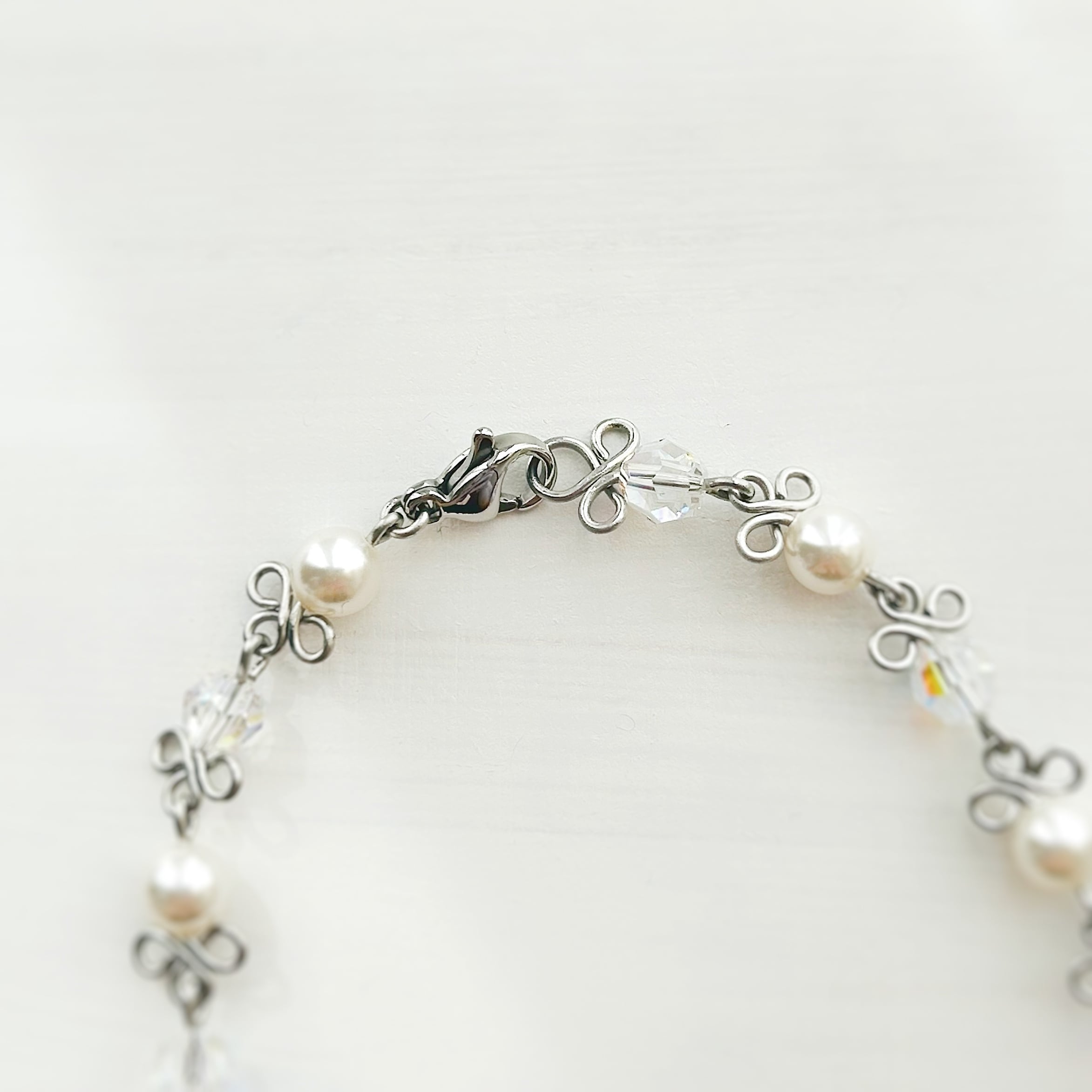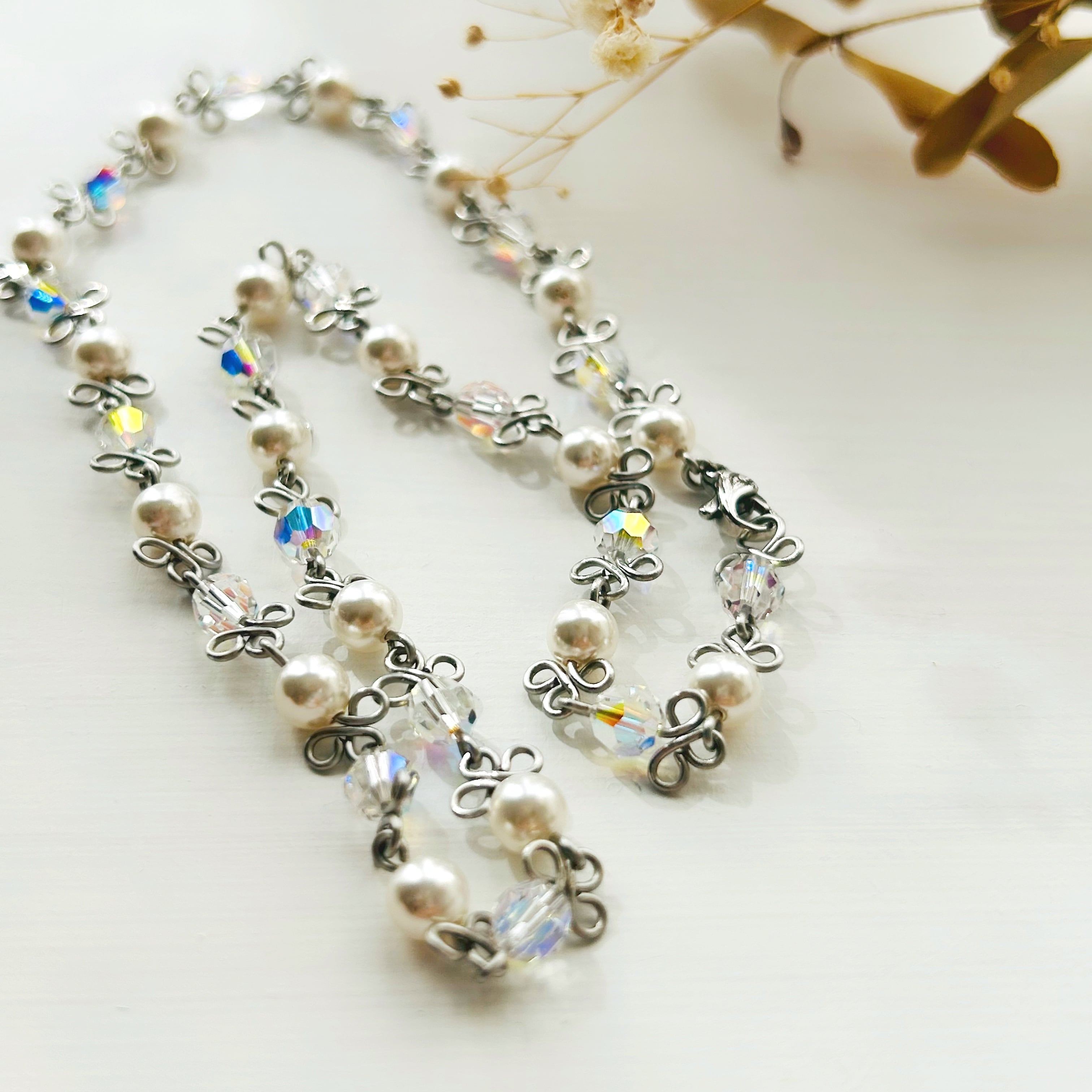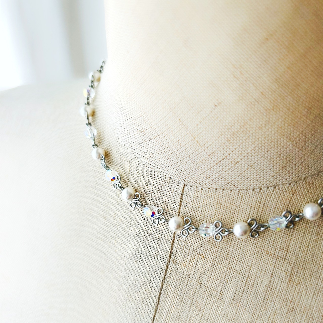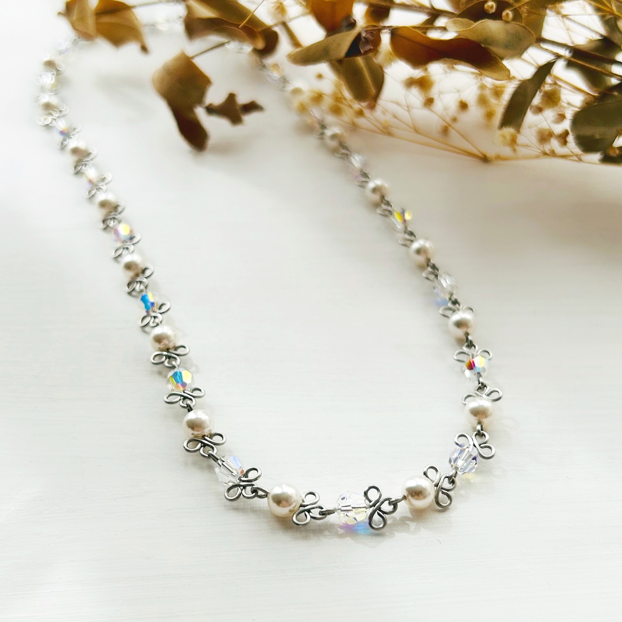 ジョイントの楽しみ無限大のベリーショートネックレスから、キラキラ輝くクリスタルガラスビーズとパールのコンビが登場!