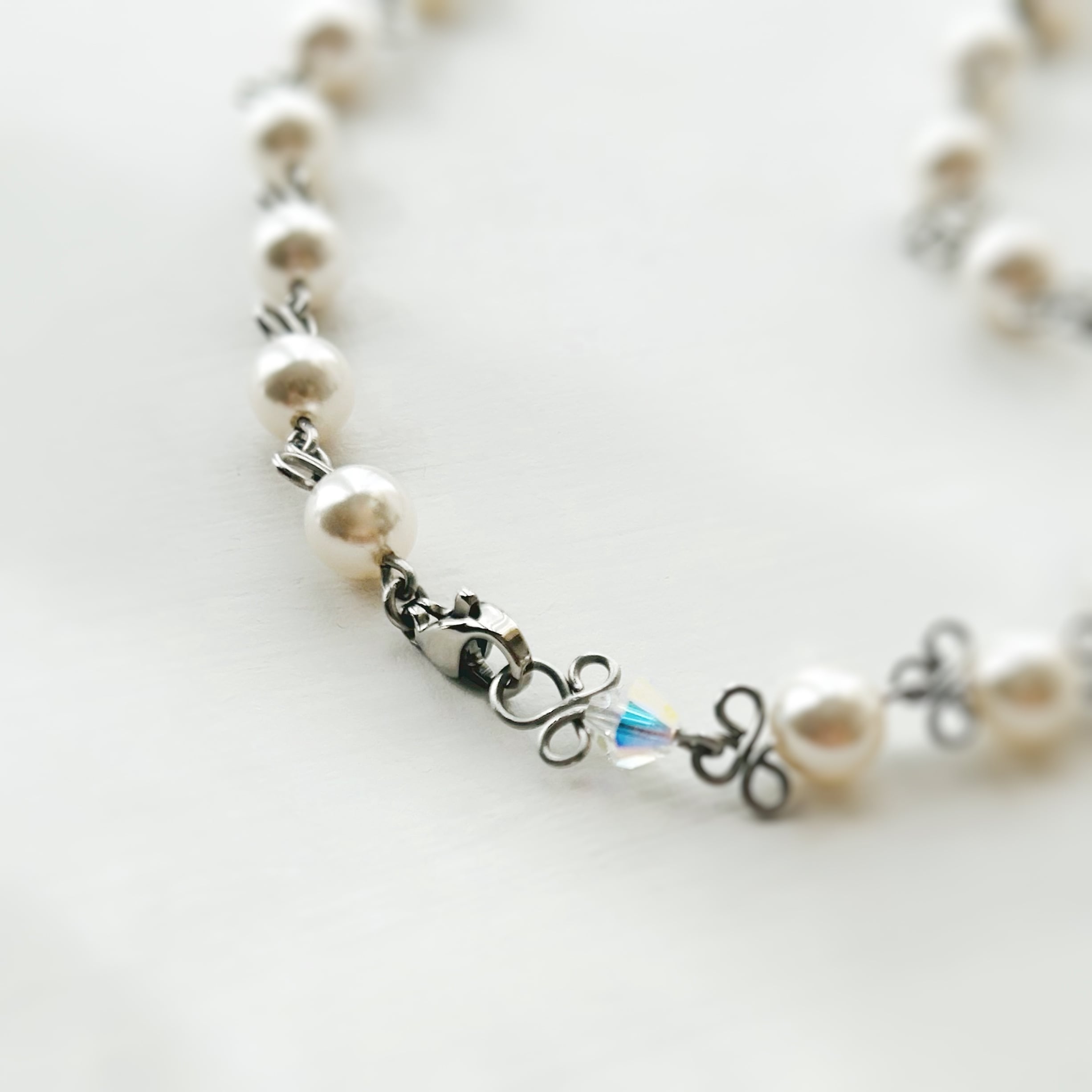 ありそうでなかったシンプルなワイヤーレースのパールネックレス。どんなコーディネートもこれ一本でグッと上品に仕上がります☆