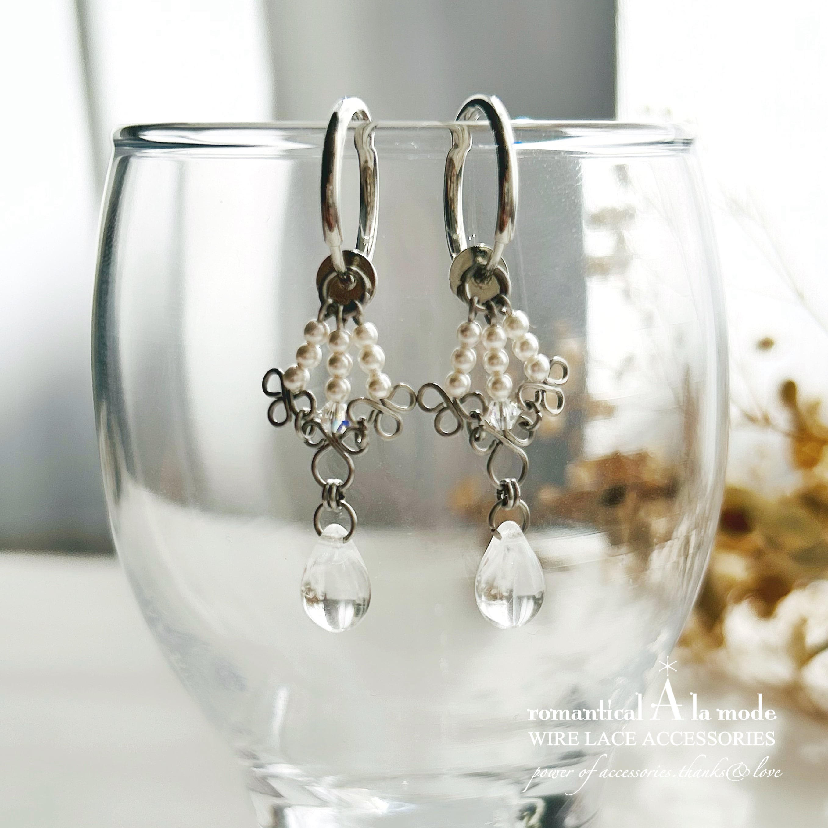 31日まで | しずくが揺れるパールレースイヤーチャーム | イヤリング・ピアス