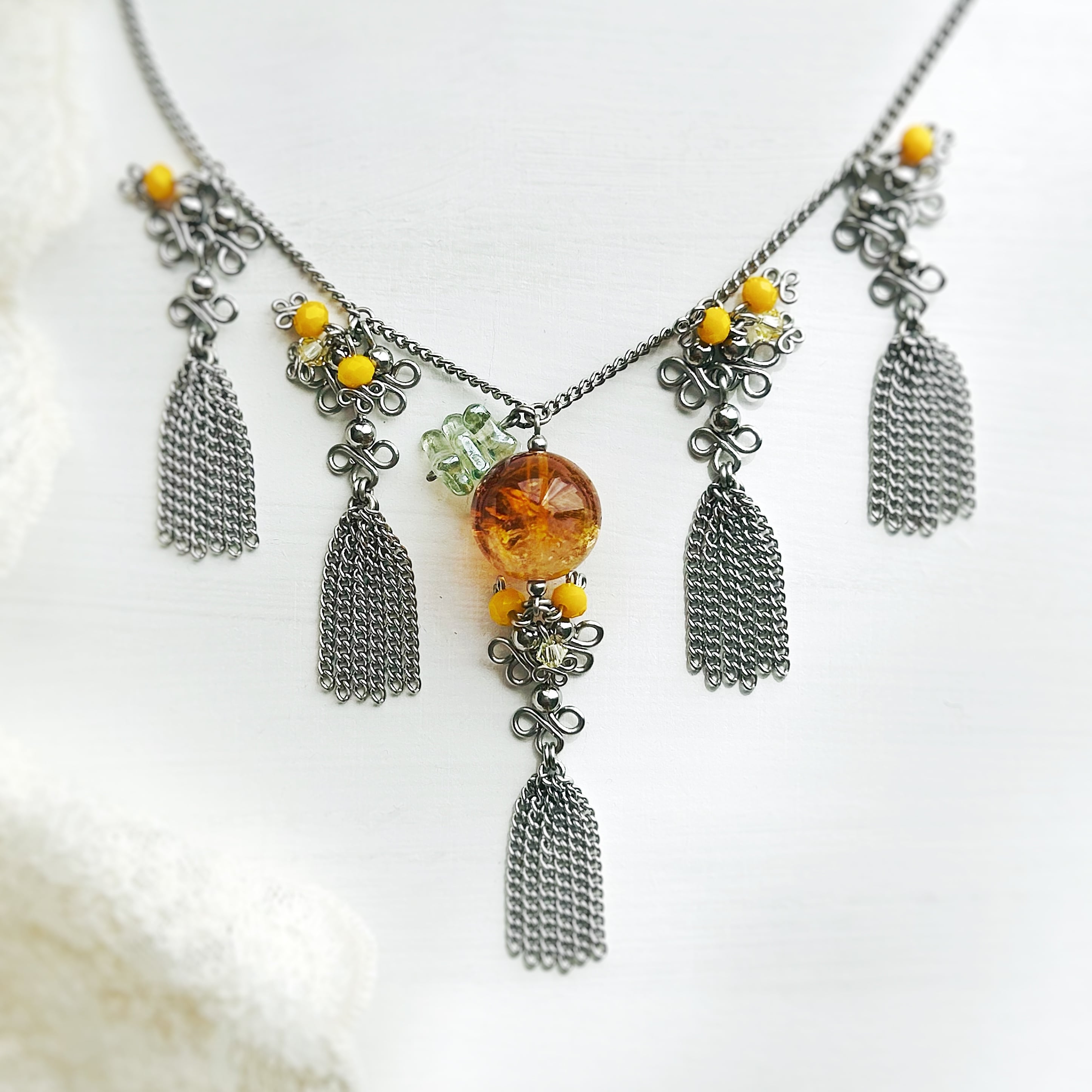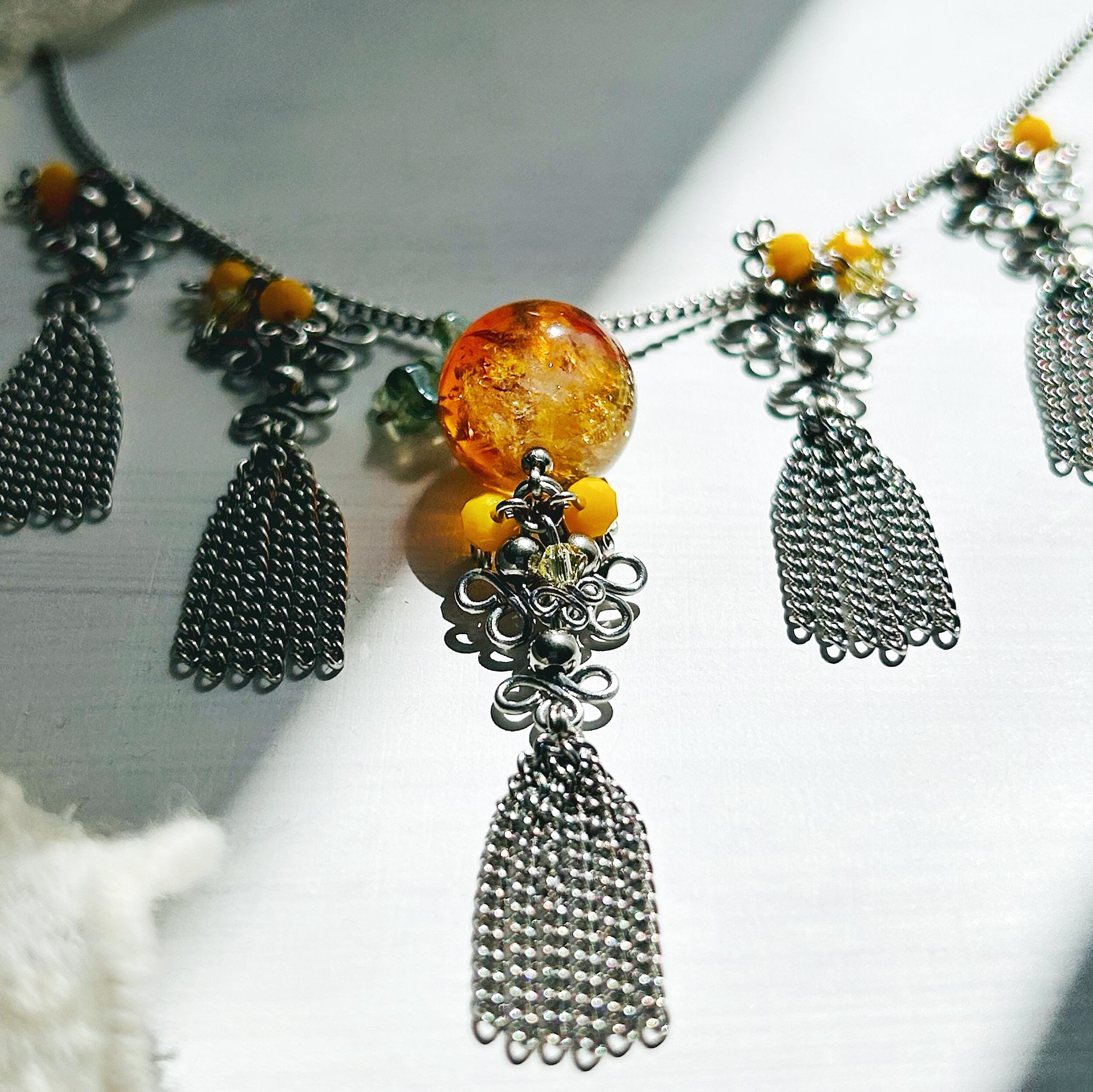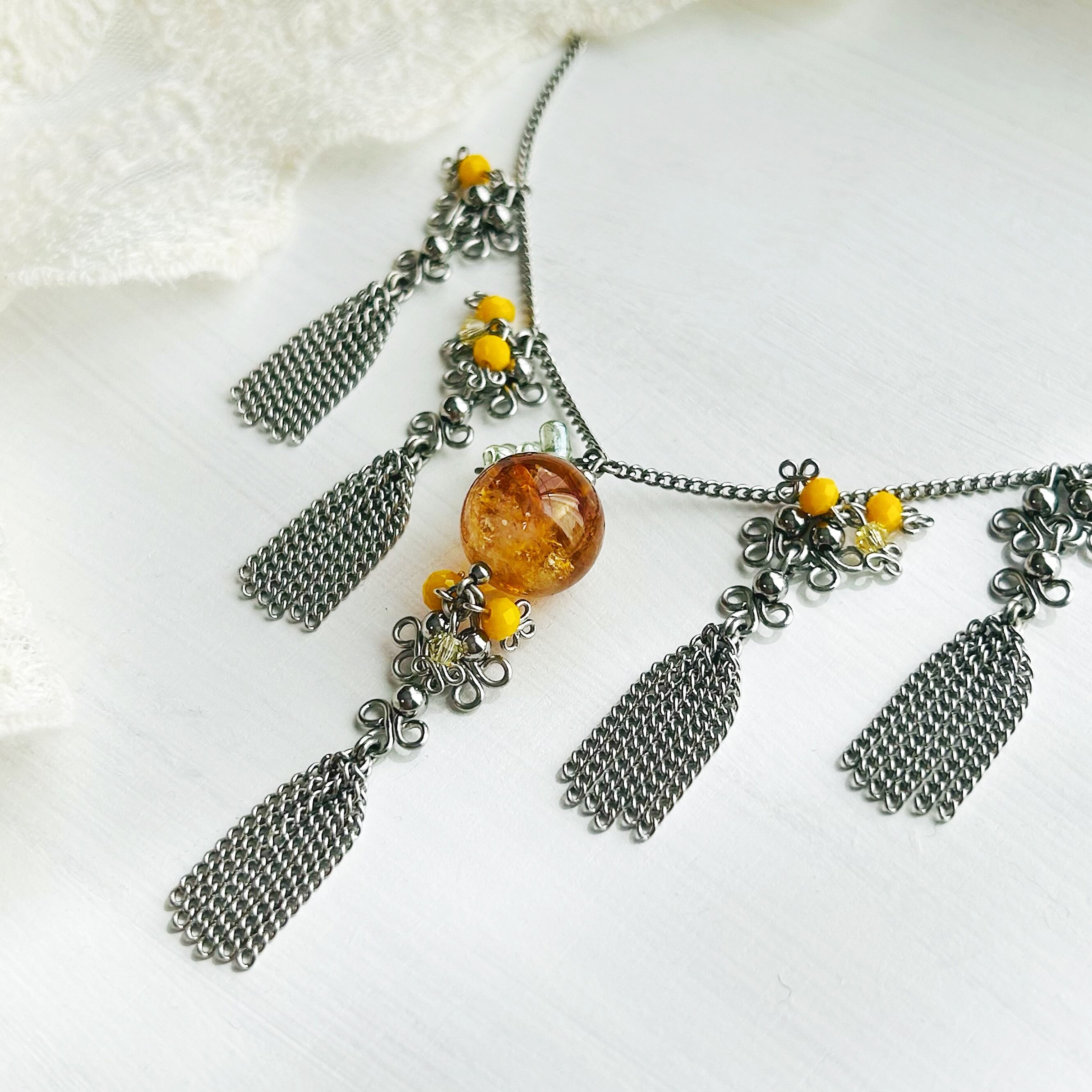 ベースはステンレスビーズでシンプルに。深みのある天然石が落ち着いた華やかさを彩ります。