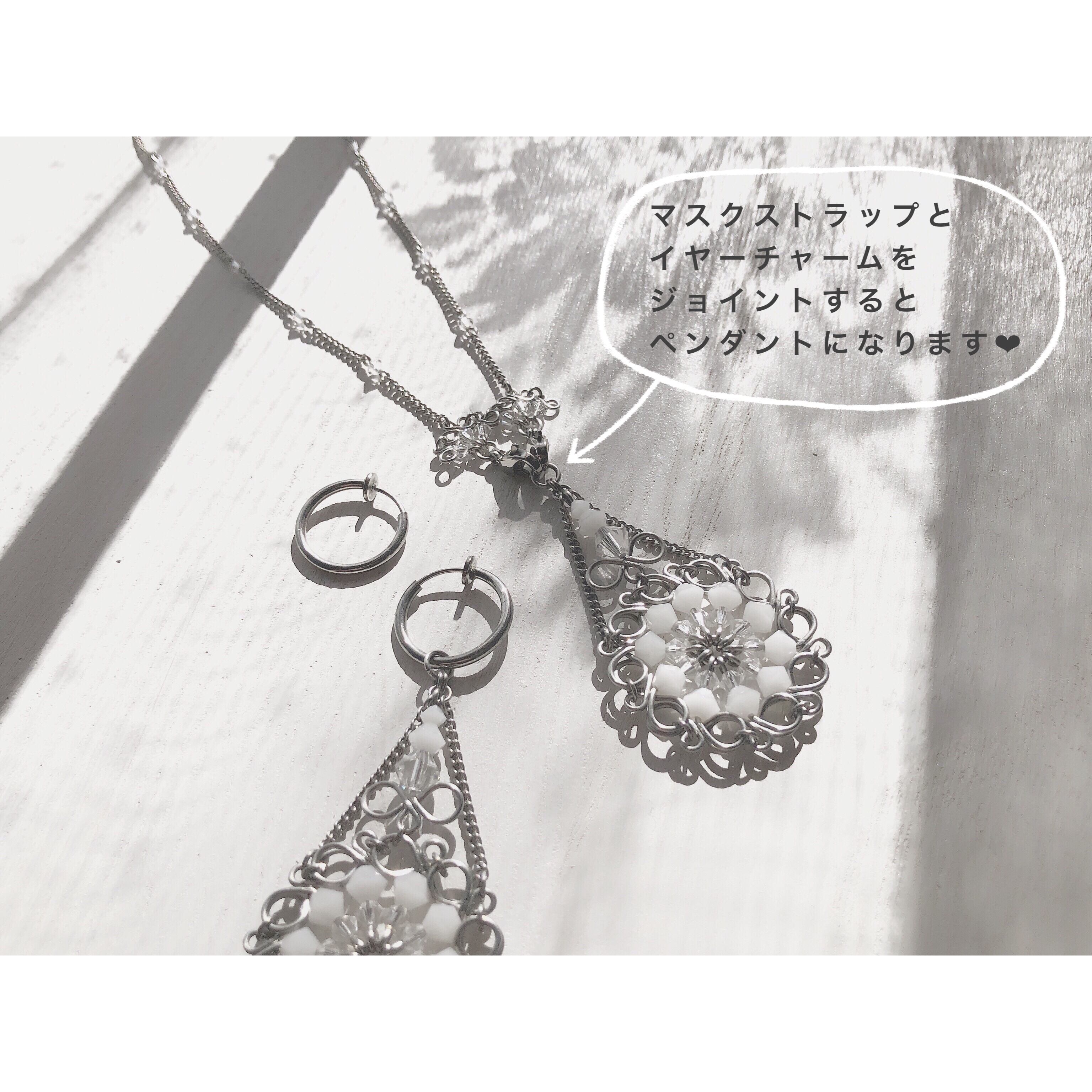 イヤーチャームとジョイントするとペンダントやラリエットネックレスにもなります。
