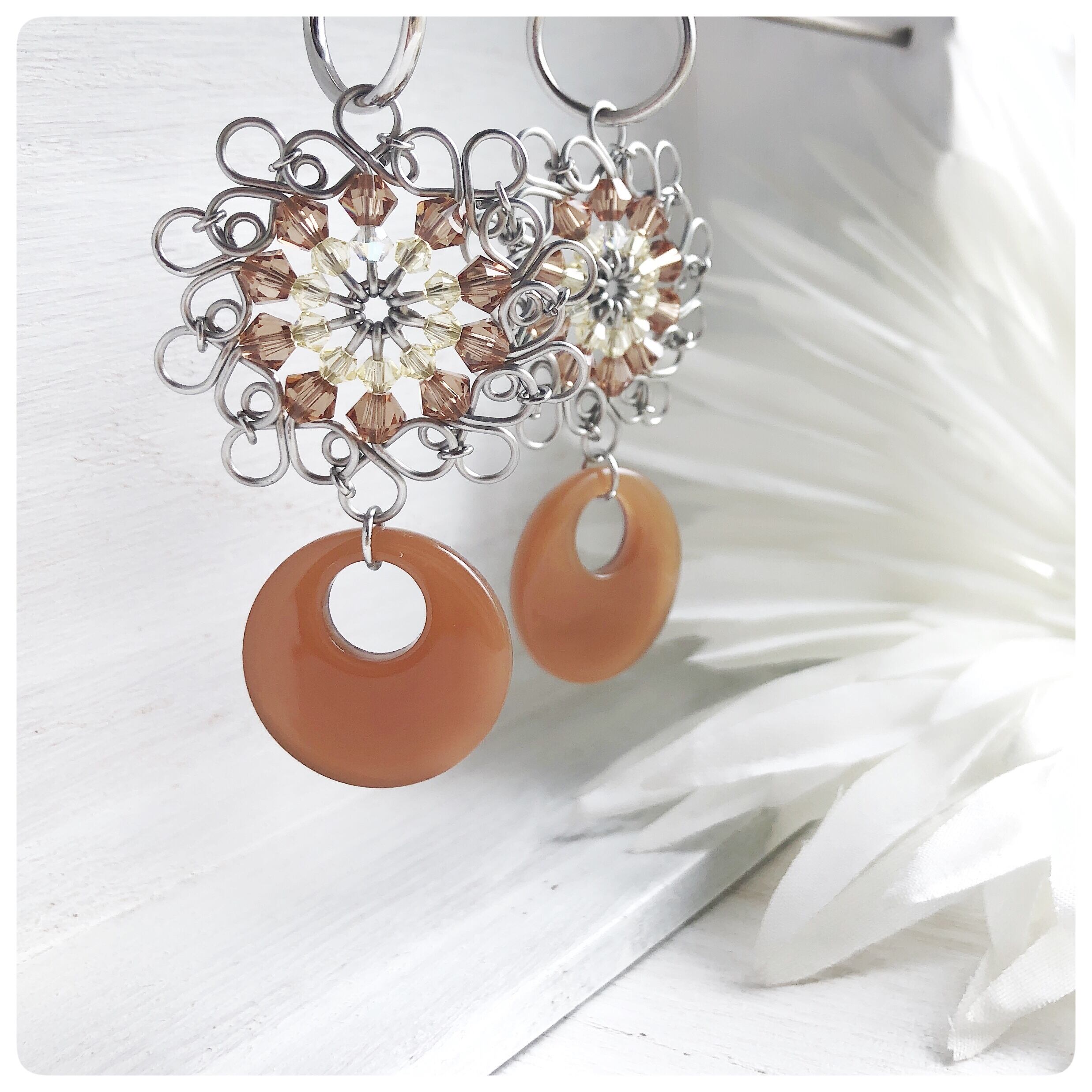 ◾︎ Dahliaとアクリルパーツのイヤーチャーム / ブラウン〈イヤリング・ピアス〉